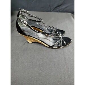 Prada T Strap Patent Leather Wedge Sandals Rattan Platform Size 9 39. Condition is Pre-owned. Shipped with USPS Priority Mail.