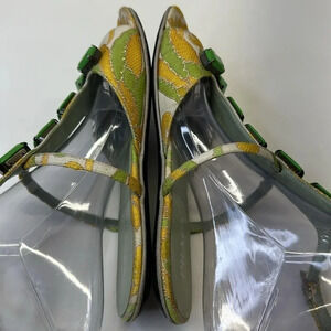 Prada T-Strap Open Toe Sandals Jacquard Floral Fabric Brocade Green Size 38 8