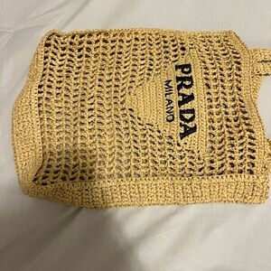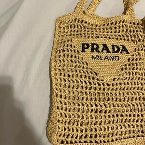 Stylish Prada tote with crochet design. Ideal for everyday use. Features iconic logo.