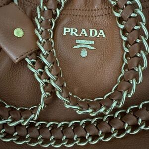 Prada Tan Leather Shoulder Bag with Gold Chain