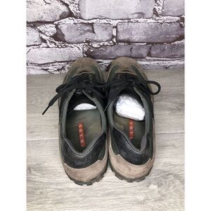 Selling Prada Tan Suede Green Mesh Black Lace Up Casual Hiking Shoes Men Sz 7.5M US/41EU