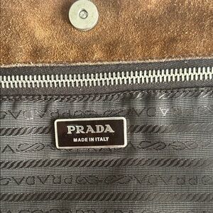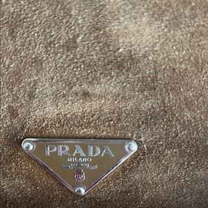 Chic Prada hobo bag in soft tan suede. Features a stylish design with a sturdy strap.