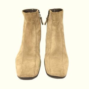 Prada Tan Suede Leather Side Zip Flat Ankle Boot Square Toe VTG Retro SZ 5.5 - 6