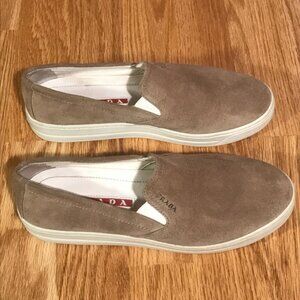 Prada Tan Suede Leather Slip on Sneaker Loafers Size 7