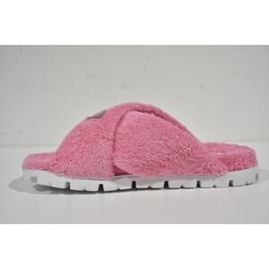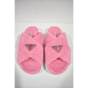 Prada Terry Pink Triangle Logo Criss Cross Strap Slide Sandal Flip Flop 40.5
