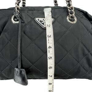 Prada Tessuto Impuntu Shoulder Bag Black Quilted Nylon Chain Leather Strap