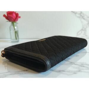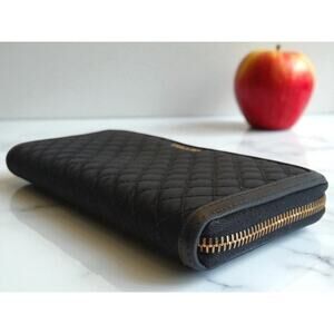 This Prada Tessuto Nylon Quilted Zip Around Wallet in Black is the perfect everyday accessory. It features a sleek, quilted nylon exterior, a secure zip-around closure, and a well-organized interior with multiple card slots, a bill compartment, and a coin pocket. This wallet is both stylish and practical, making it a must-have for any fashion-conscious individual.