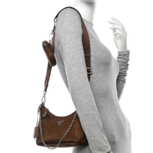Prada Tessuto Nylon Saffiano Re-Edition 2005 Shoulder Bag: Color--Cacao