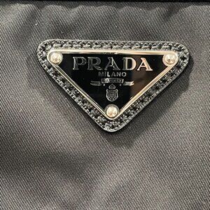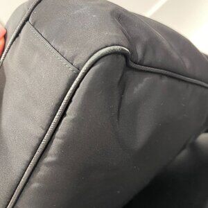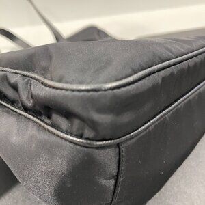 This stylish shoulder/crossbody bag is crafted of tessuto nylon in black. The bag features leather top handles, polished silver hardware saffiano leather trim and a real and front large pocket. The top zipper opens to a black Prada jacquard fabric interior with zipper and patch pockets. This is a preloved item. Preloved items typically show minor signs of use and wear. This bag is in overall very good preloved condition. Please take the time to look at photos for condition. Perfect work/computer bag. Reach out for additional information.