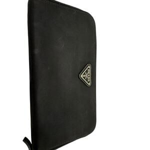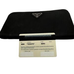 Classic and functional, this Prada zip-around wallet is crafted in durable Tessuto nylon and features the signature triangle logo plaque. A timeless piece that blends luxury and utility with ease.
