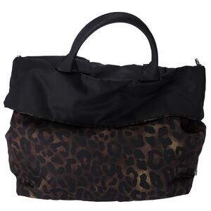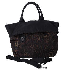 Prada Tessuto Reversible Leopard Print Nylon Tote Bag Brown