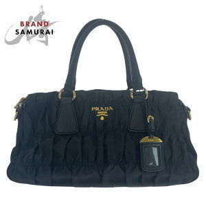 Prada Tessuto Shoulder Nylon Black Leather Bag Shirred