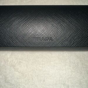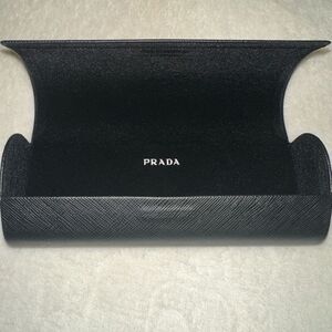 Chic Prada case for sunglasses. Textured black finish. Perfect for stylish protection.