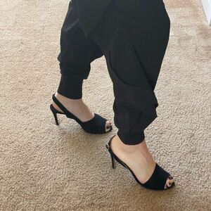 Prada Timeless Black Suede Open Toe Heels 7.5