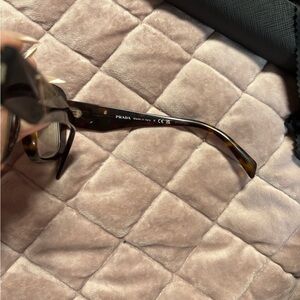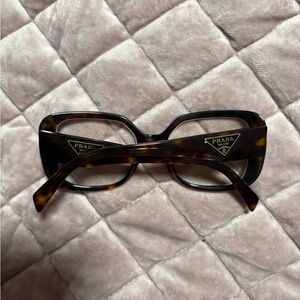 Stylish Prada glasses with a tortoise shell pattern. Perfect for a sophisticated look.