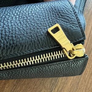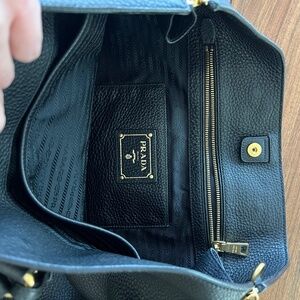 Three pockets inside: one with snap closure, one with zipper secure closure, one no closure