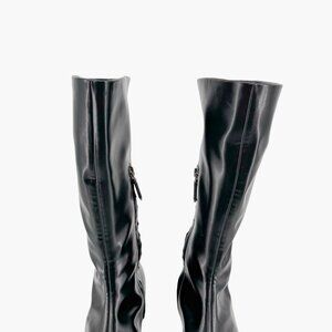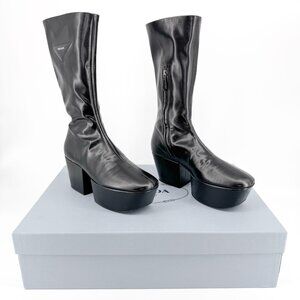 Prada Triangle Logo Platform Boots EU 39 US 9 Black Stretch Nappa Tech Mid Calf