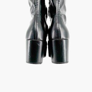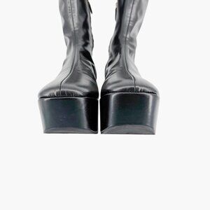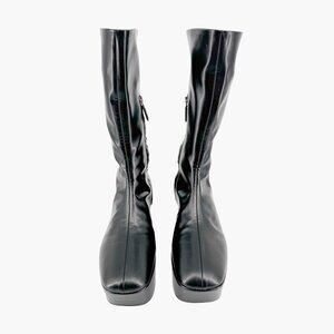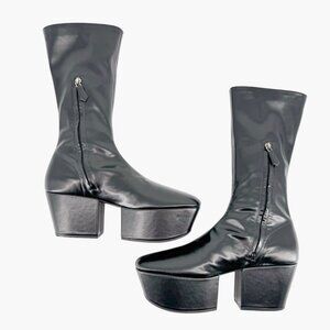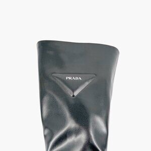 Prada Triangle Logo Platform Boots EU 39 US 9 Black Stretch Nappa Tech Mid Calf