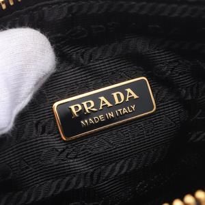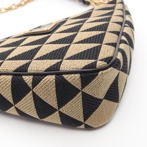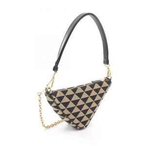 Prada Triangle Shoulder Bag, Canvas and Leather, Women's, Beige/Black, 1BC543