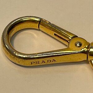 Featuring a bow detail, a front logo plaque, and a hook and split ring.