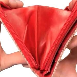 This pre-loved Prada Wallet has beige canvas with red leather details. The wallet has multiple pockets for cards and enough space for cash money. The item is in an excellent condition, with minimals signs of wear. The measurements are 10.5 x 9 x 3 cm.
