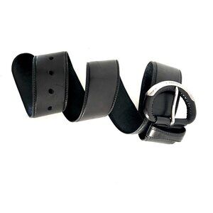 This unisex Prada leather belt with silver tone buckle is in very good pre owned condition. Light signs of expected wear on leather and scuffing and some tarnishing on buckle. There's enough room to add another hole or 2 professionally punched. Please examine photos closely as they part of the description.