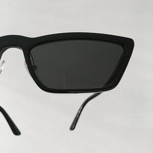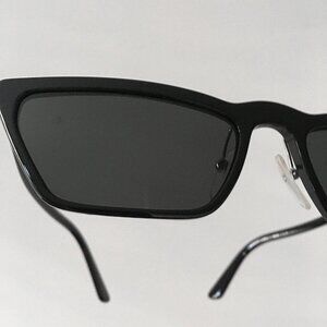 Angular cat-eye sunglasses with shining logo accents at the temples. 58mm lens width, 18mm bridge width, 145mm temple length. 100% UV protection. Adjustable nose pads. Acetate/plastic. Made in Italy. NWOT. Case included.
