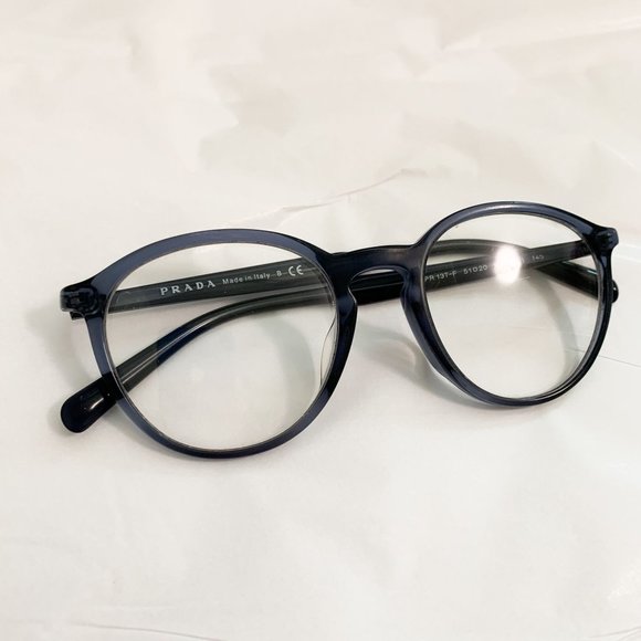 Prada VPR13t smokey gray blue frame round women's eyeglasses. Prescription lens.
