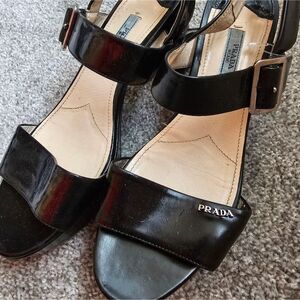 Step out in style with these elegant black sandals from Prada. Perfect for any occasion, these shoes offer both comfort and sophistication.