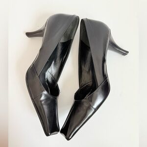 Prada Vintage Black pleated brushed leather square toe pumps EU 39
