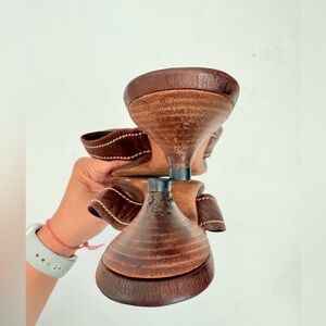 Prada Vintage Brown Leather Triangle wooden logo thong kitten heel sandals EU 38