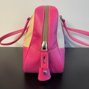 Prada Vintage Canapa Canvas and Fuchsia Calf Leather Shoulder Bag - Preowned