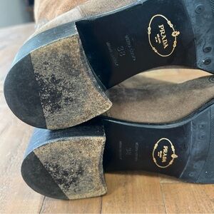 Prada Vintage Chestnut Tall Riding Boots Eu 38 US 7.5 Suede Embossed Block Heel