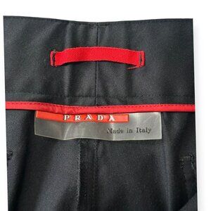 Authentic Prada dark blue trousers from the early 2000–2005 era, purchased directly from Prada in Firenze, Italy. Classic minimal design with Prada’s signature tailoring details, including interior red trim finishing and button fly.