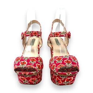 Prada Vintage Le Voyageur Collection 2012 Floral Wedge Platform Sandals Red 40.5