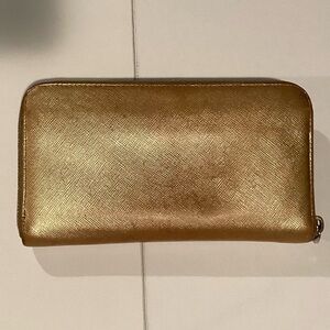 Prada Vintage Metallic Gold Zip-Around Wallet