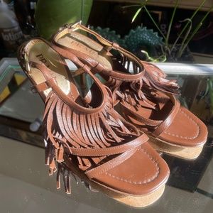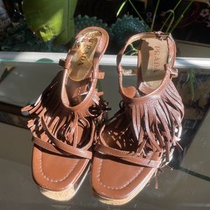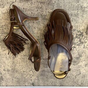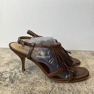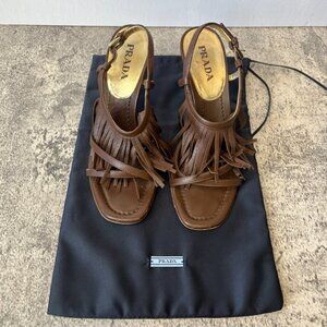 Prada Vintage RARE Leather Brown Fringe Open Toe Heels Size 36.5