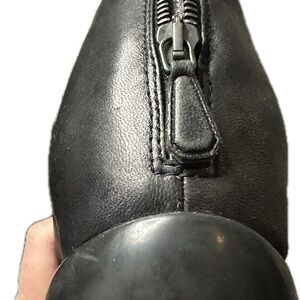 Black Leather Knee High Boots with back zipper and velcro with Prada embossing