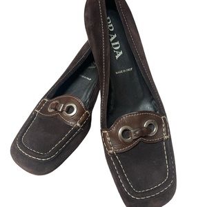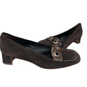 Prada- Vintage Suede Mocha Block Heel Loafer Size 38 VGUC