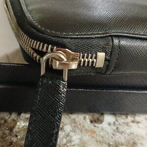 New with the box in excellent condition. .This is an authentic PRADA Tessuto Nylon iPad Case in Black. This stylish document holder is crafted of fine nylon in black. The bag features a facing Prada plate and wrap-around main zippers that open to a leather interior. This is excellent for home or travel with stylish sophistication only from Prada!