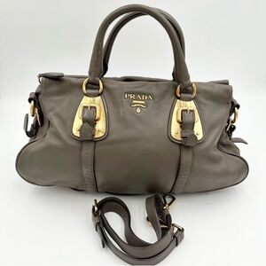 Prada Vitello Daino Leather Satchel in Elegant Taupe Gray –Timeless & Versatile
