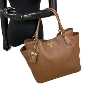 Prada Vitello Daino Side Pocket Convertible Large Tote Brown leather
