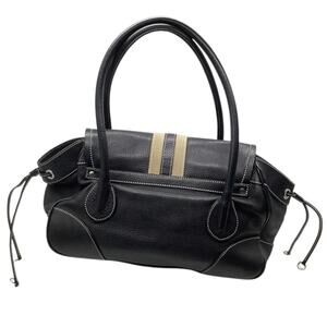 Prada Vitello Daino Stripe Pebbled Leather Shoulder Bag in Black and Tan