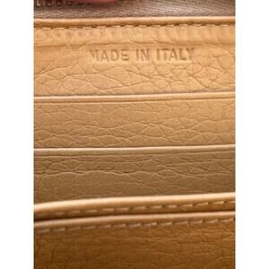 Authentic Prada compact wallet crafted in supple tan Vitello Daino leather, known for its rich pebbled texture and durability. Features zip-around closure, dual compartments, card slots, and heat-stamped Prada Milano logo inside. Classic Italian craftsmanship in a versatile neutral tone—ideal for everyday carry or travel. Made in Italy.