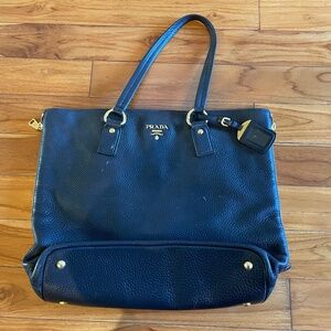 Black Prada Vitello Diano Tote. Slight tear on side, can be easily sown.