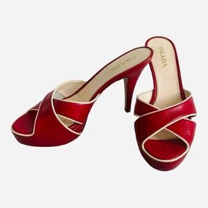 #Prada #PumpsShoes #DressShoes #WomensSandals #OpenToeSandals #HighHeels #PlatformSandals #Raspberry #Red #LeatherShoes #DesignersShoes #StilettoShoes #WomensShoes