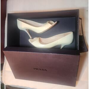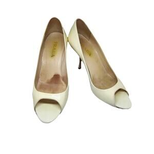 Prada Vtg PeepToe 3 1/2" Vernice Classic Italy Nude Leather Stiletto Heel Sz 5.5