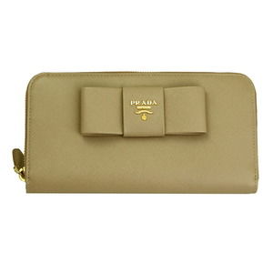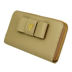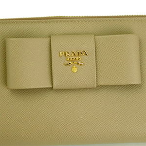 Prada Wallet CAMMEO long motif ribbon SAFFIANO beige FIOCCO pink