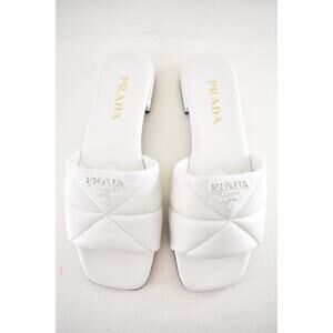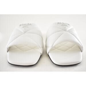 Prada White 55mm Quilted Nappa Leather Logo Slide Sandal Flat Sabots Mule 39