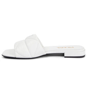 Prada White 55mm Quilted Nappa Leather Logo Slide Sandal Flat Sabots Mule 39.5
